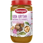 ”Klicket” garanterar att burken varit oöppnad. Värm önskad mängd på en tallrik i mikron/vattenbad. Rör om och känn efter att maten är lagom varm.